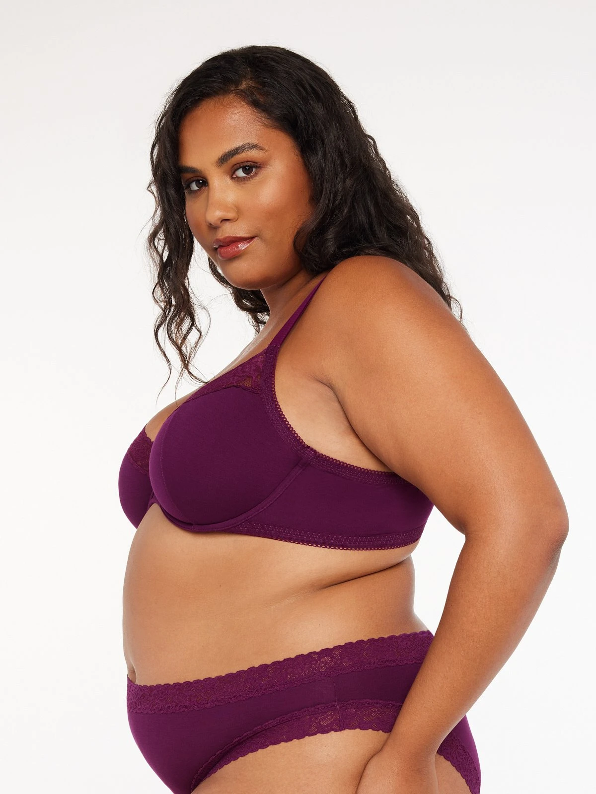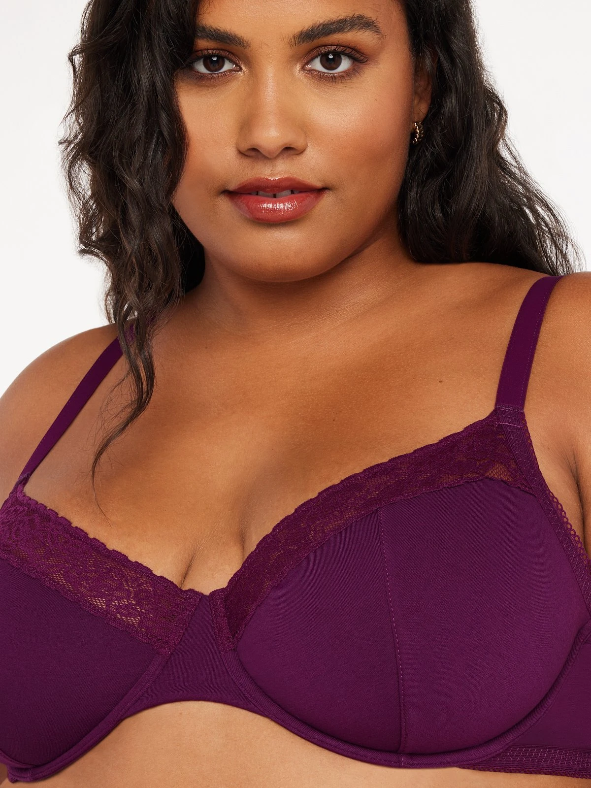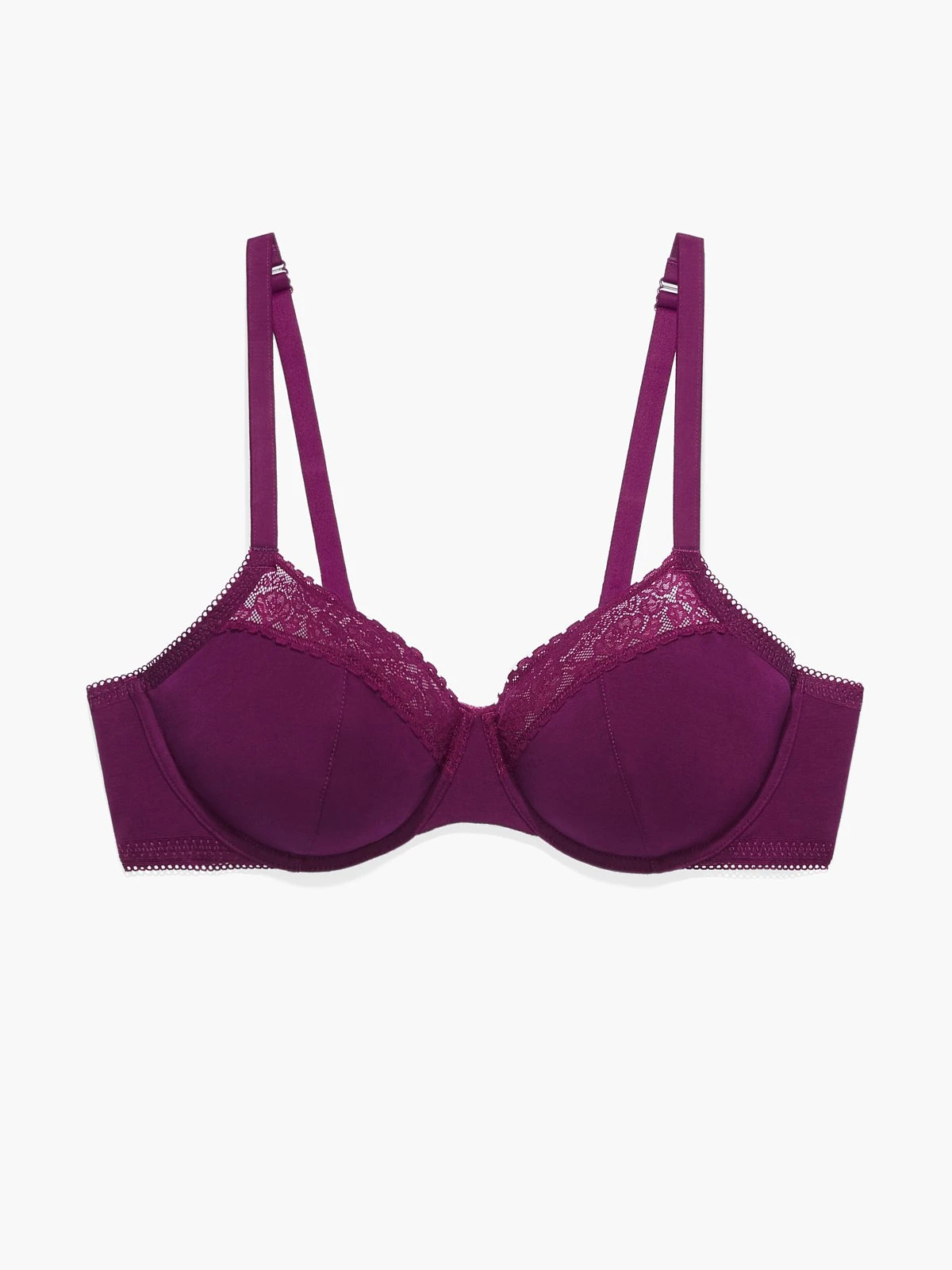 The Cotton Essentials Unlined Bra is an everyday essential featuring a 3-layer front, adjustable supportive straps, and delicate logo lace trim.