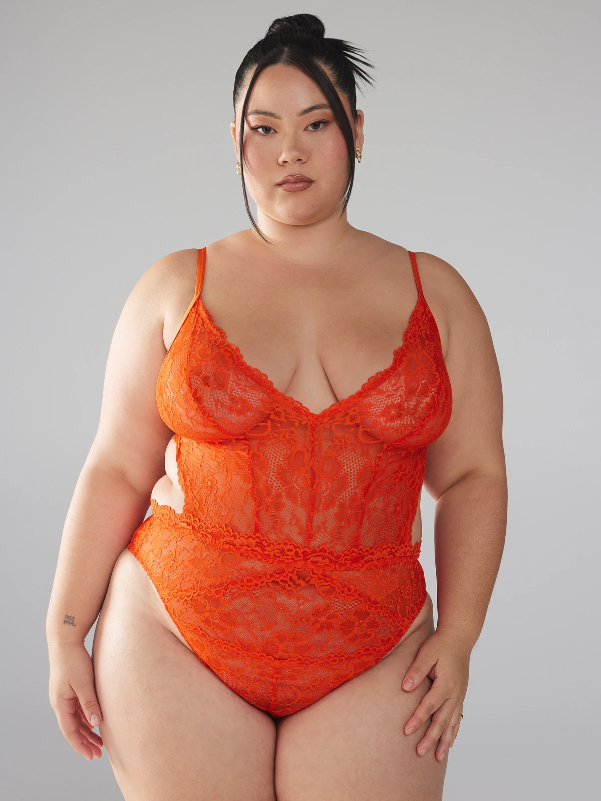You always get your way. Our Floral Lace Teddy features a high-leg silhouette, an allover stretch-lace body, a back cutout, and adjustable straps.