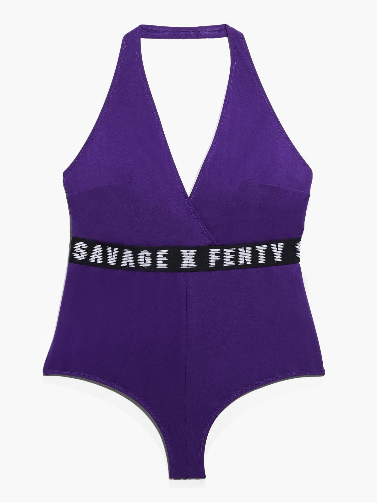 Show them how Savage you are in our Forever Savage Plunge Teddy. Made from a cozy combination of ultra-soft cotton and elastane, this one-piece features a halter neckline, open back, and logo waistband.