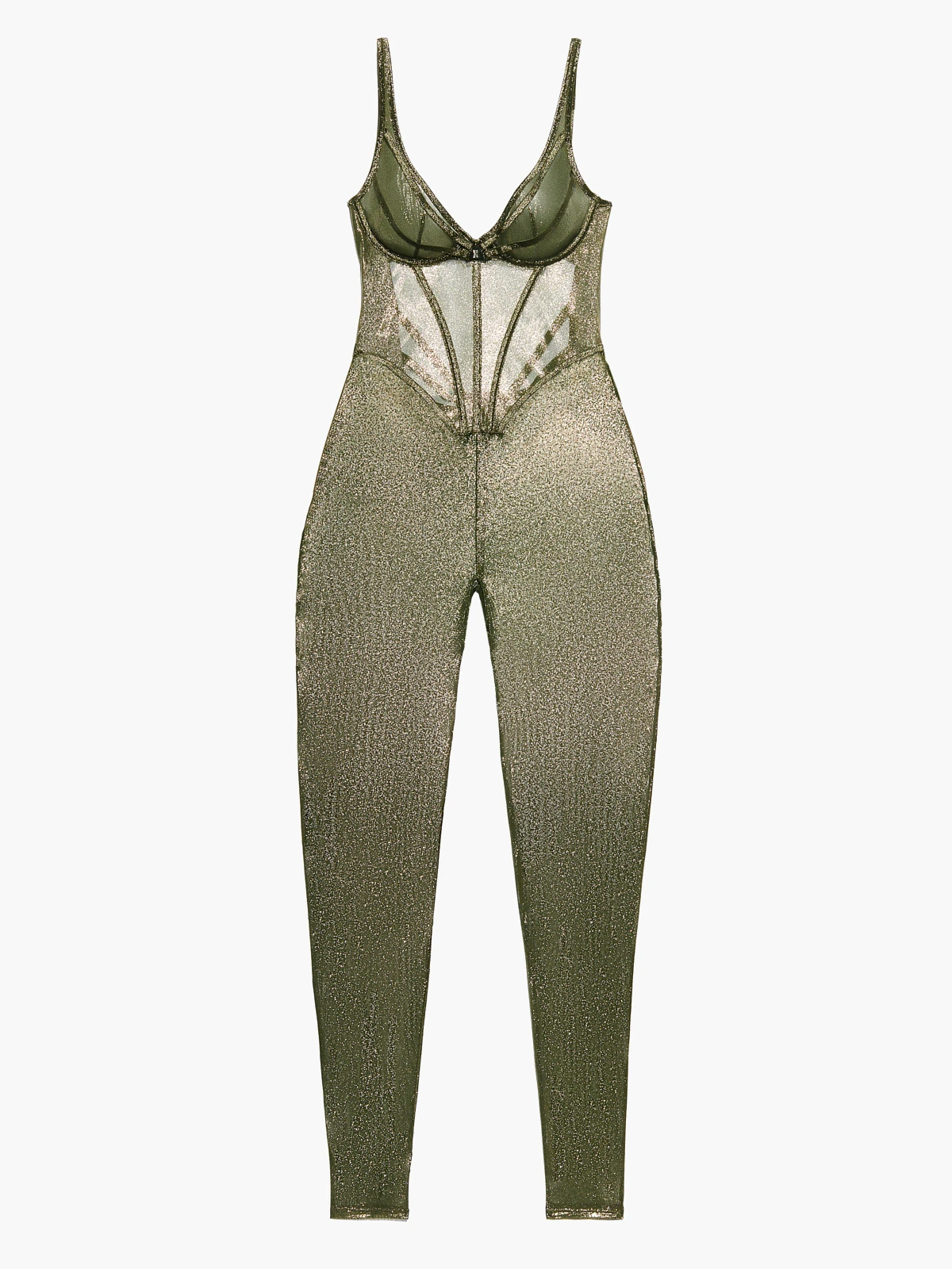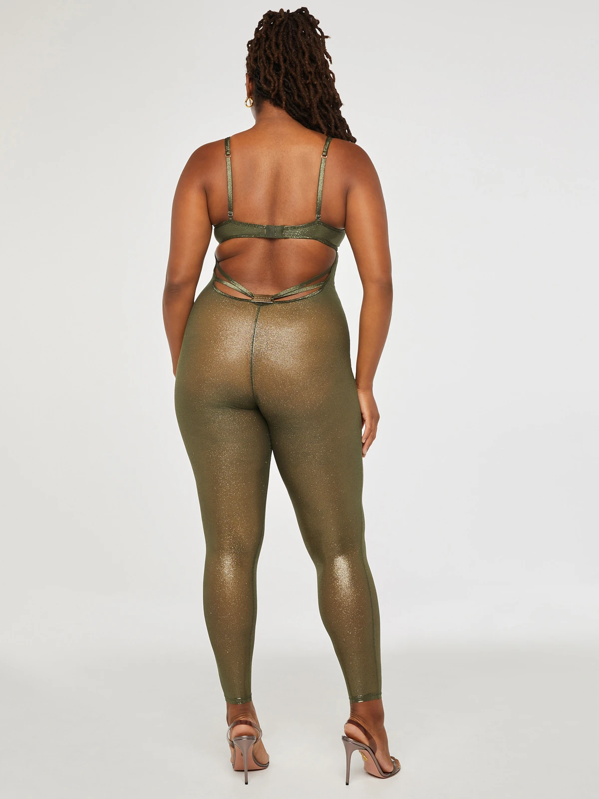 Reach new levels with our Going Platinum Mesh Crotchless Catsuit, which features an unlined, shiny foiled mesh body, a plunge neckline, a low, open-back cutout with strappy details, and tulle-lined cups for added support.