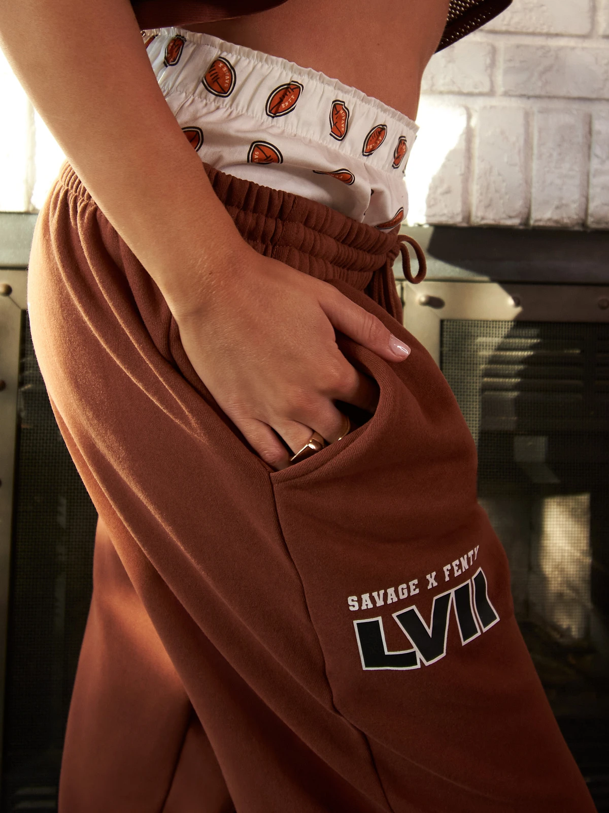 Get halftime ready! Our Limited-Edition LVII Sweatpant is made from a soft fleece and features a “Property of Savage X Fenty” graphic in back and an “X” logo patch on the left leg.