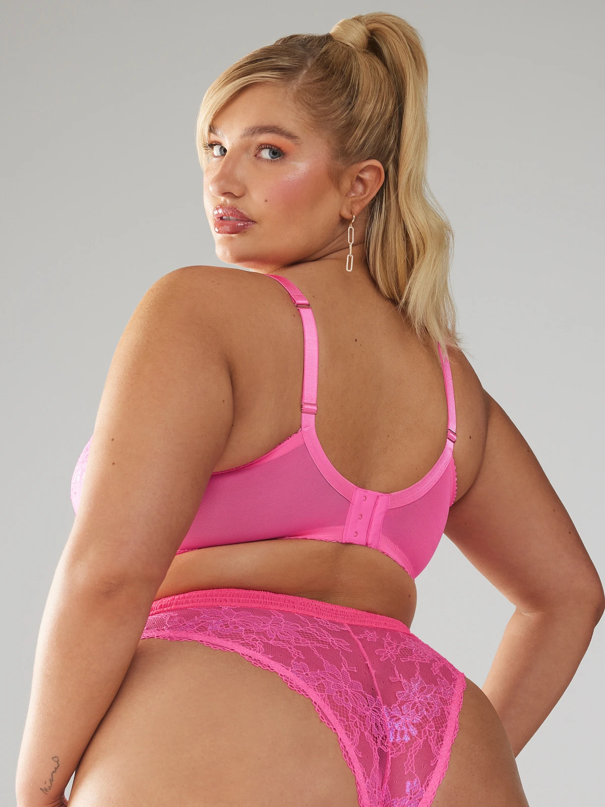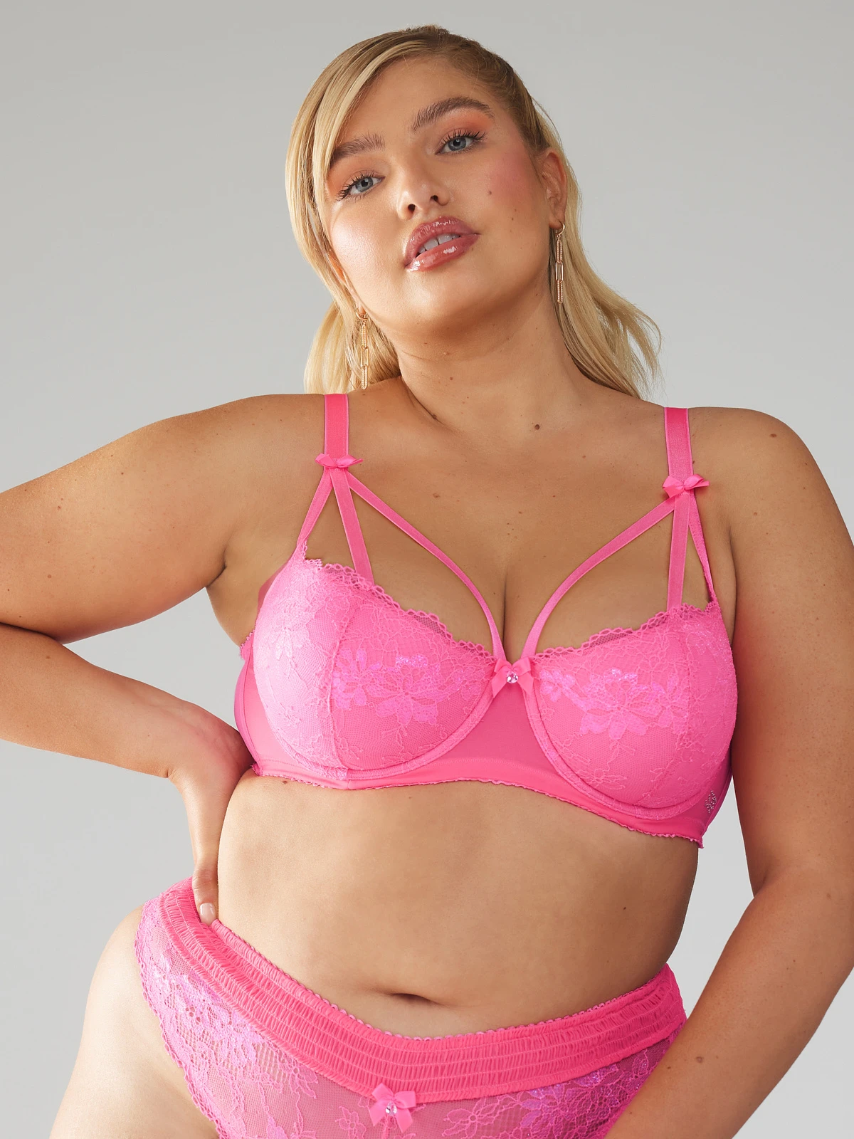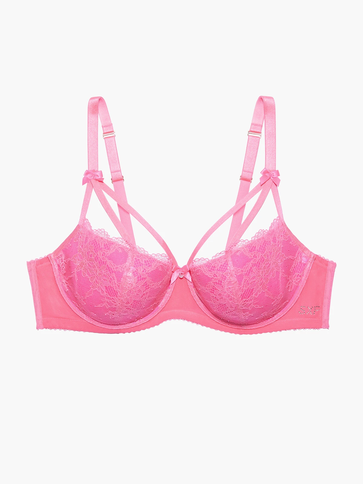 Our Living in the Clouds Iridescent Lace Caged Demi Bra features sheer lace and supportive straps for all-day comfort.