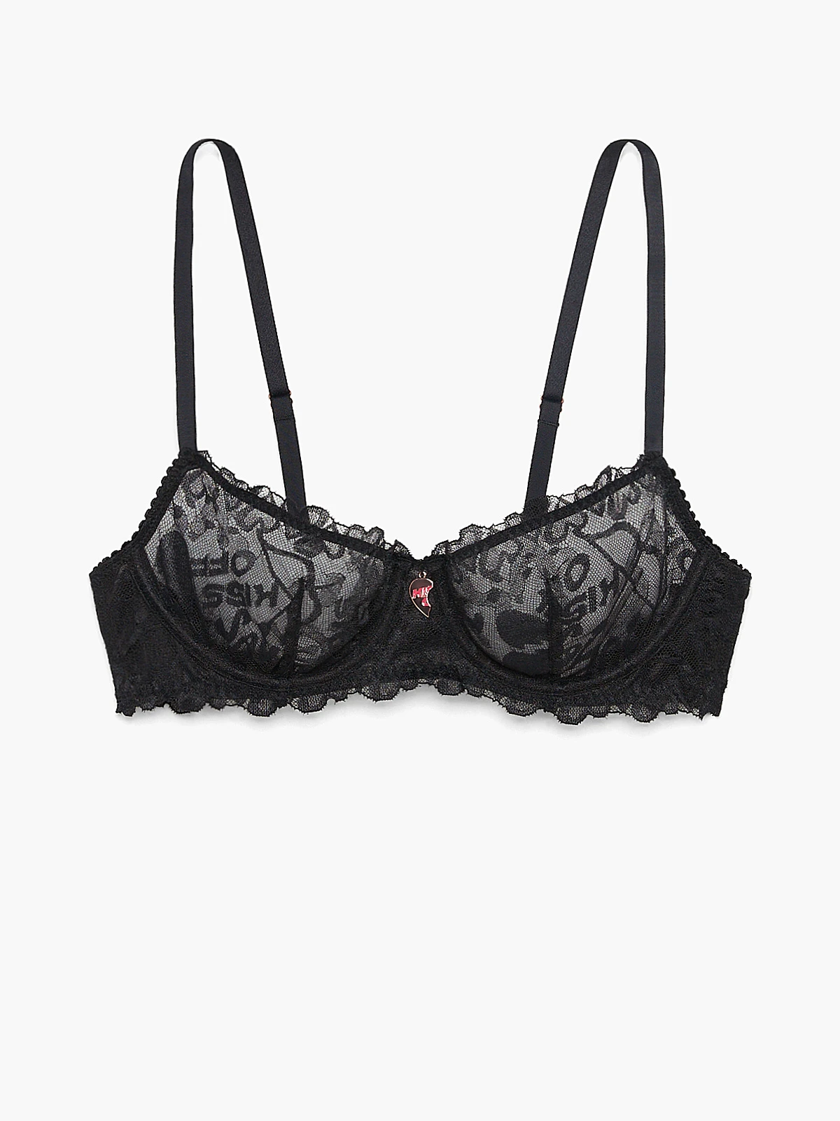 Let the lace speak for itself. Our Lovestruck Lace Unlined Balconette Bra is made from a custom, heart-patterned, micro-fishnet fabric, and features a broken heart charm at the center.