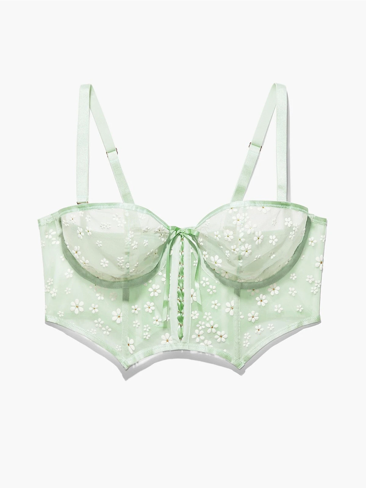 Our Puff Daisy Unlined Bustier features sexy, sheer fabric with interior boning for a structured fit, mixed with a sweet puff-print daisy pattern.