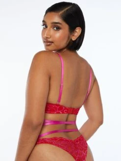 Meet your lace and leather alter-ego. Our Renaissance Rose Unlined Demi Bra features faux leather and rose embroidery, an underwire, adjustable supportive straps, and a power-mesh back wing.
