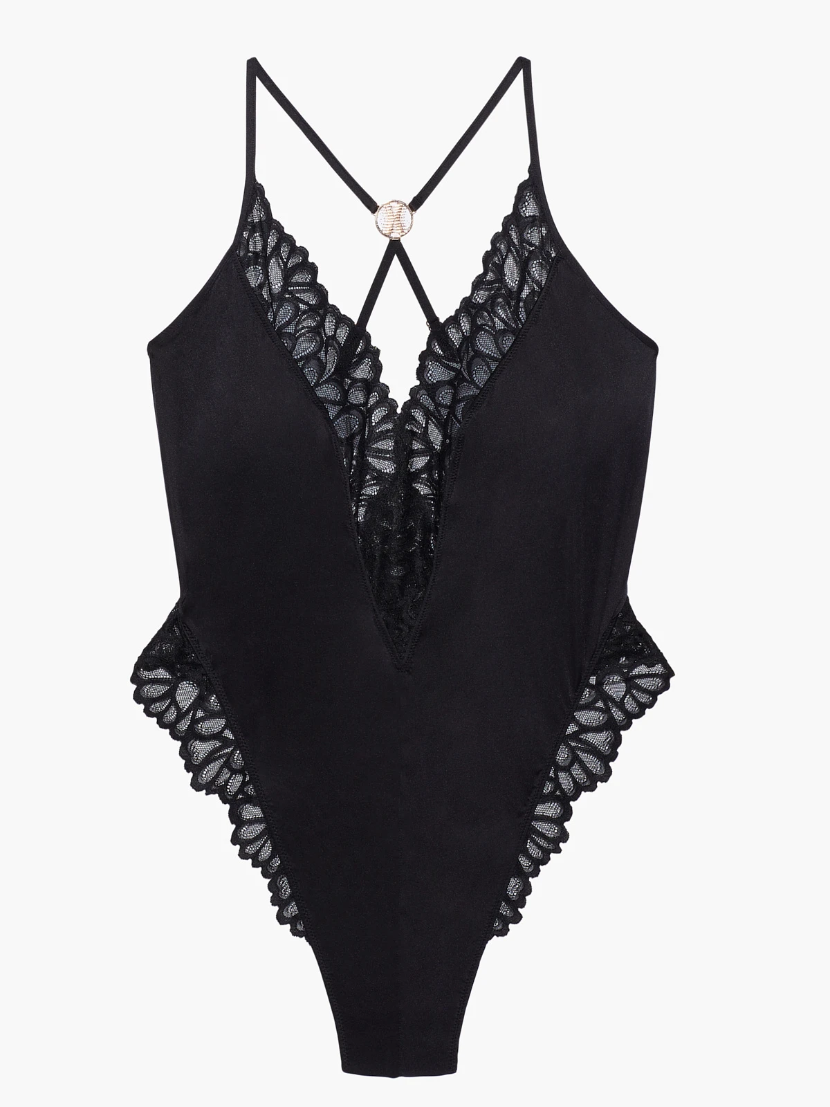 Our Savage Not Sorry Lace Teddy features a firty high leg and new Savage custom-designed stretch floral lace.