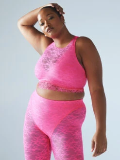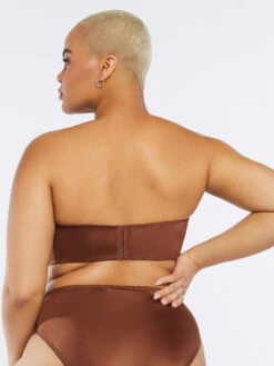 - Adjustable, supportive, shiny elastic straps with rose gold-tone hardware