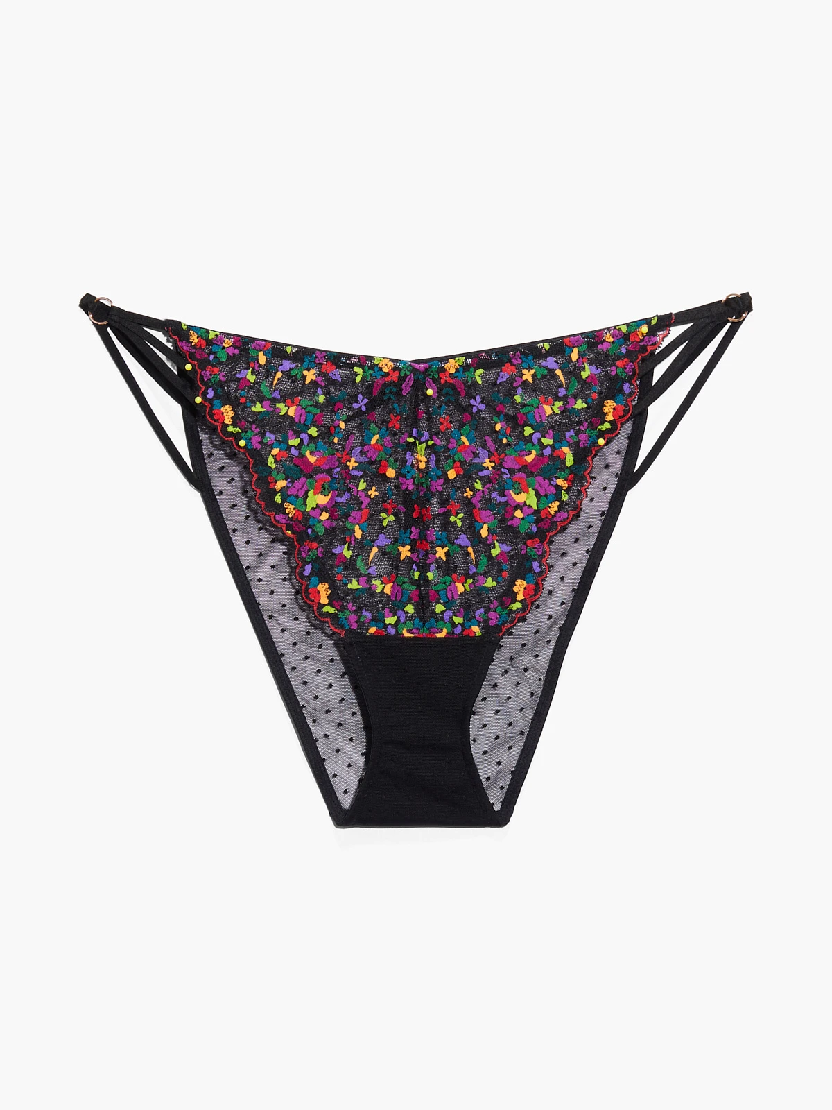 Lush flowers are always a vibe! Our sheer Steamy Floral String Lace Bikini features a stretch lace body, dotted mesh back, and elastic straps with rose gold-tone rings at each side.