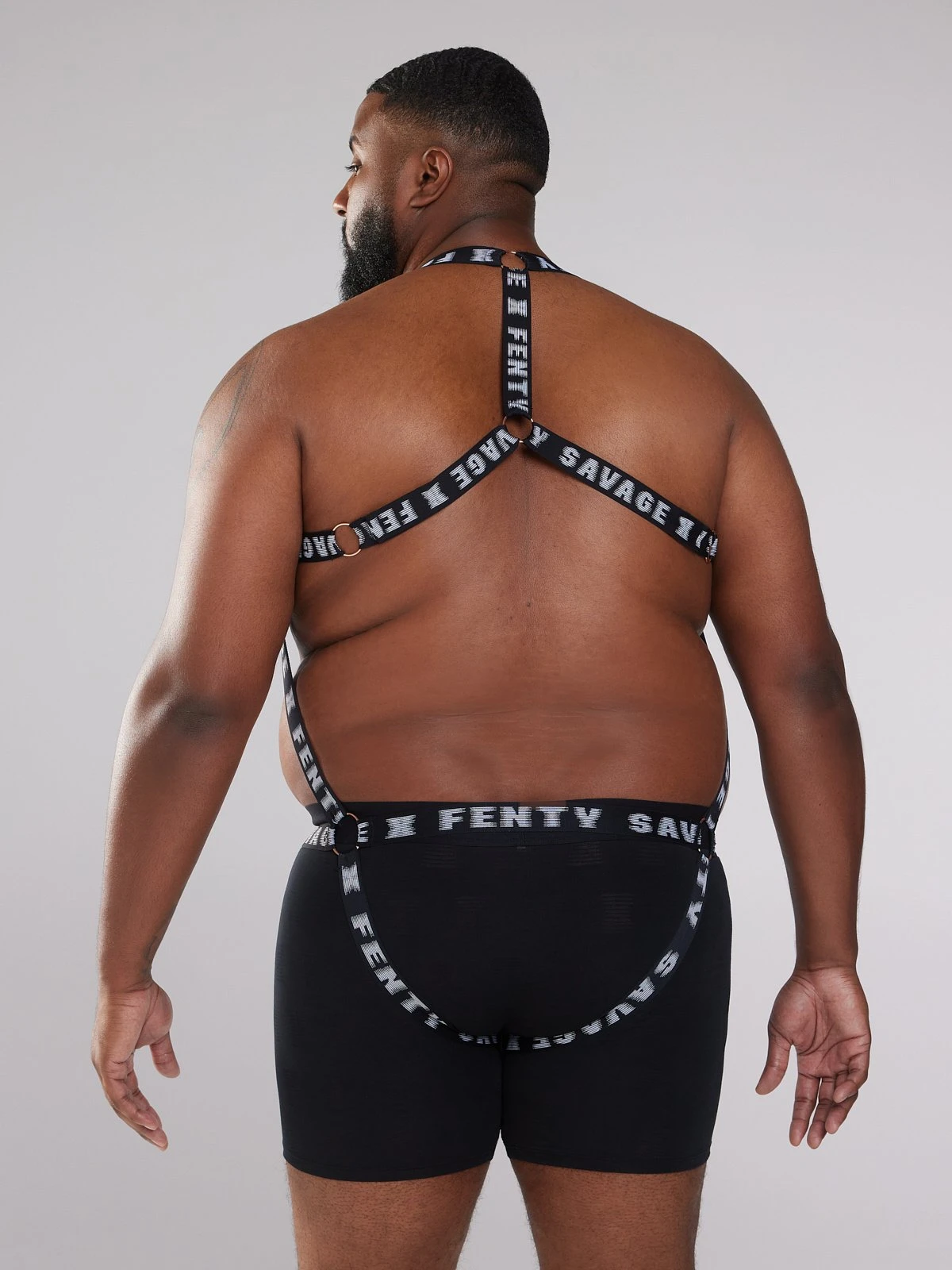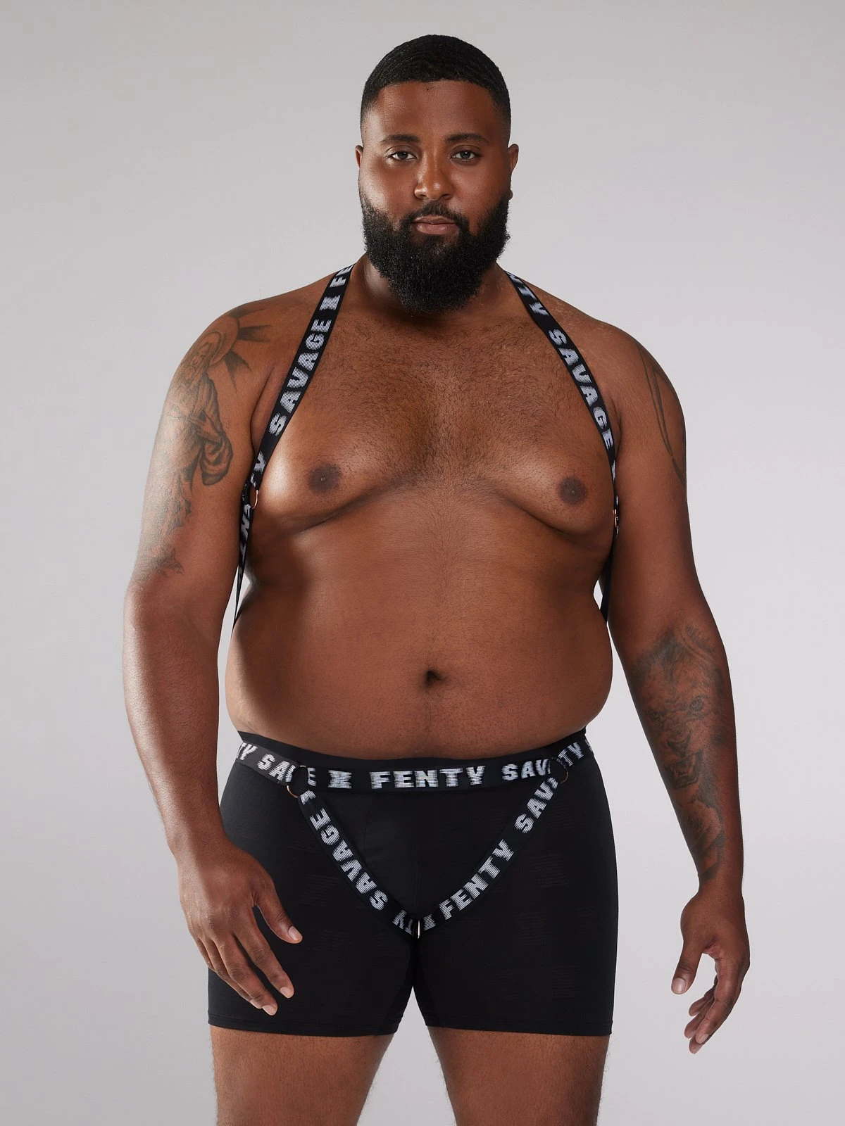 No safe words here. Our Xtreme Sheer Body Harness features a matte logo elastic body and metal hardware with adjusters at the back waist.